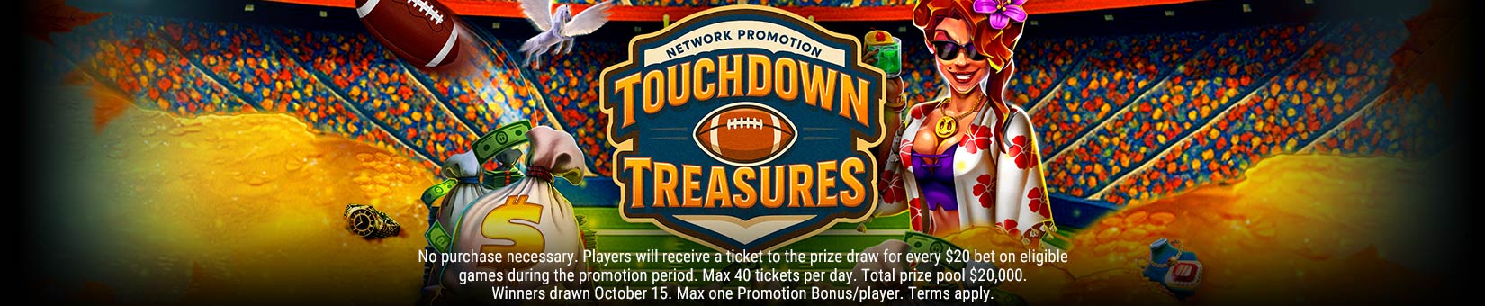 It’s game time! Wager $20 on selected Evolution games and you’ll get a ticket to the $20,000 Touchdown Treasures Prize Draw on October 15.